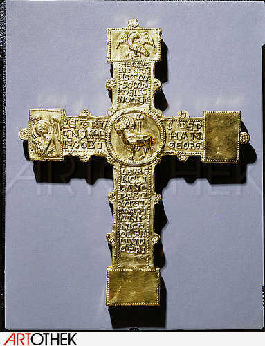 Bildtitel:Sogenanntes Erpho-Kreuz, Reliquienkreuz des Erzbischofs Erpho, Rückseite Agnus Dei. 1005-1097