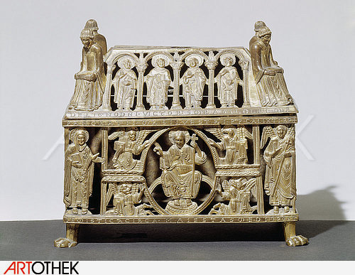 Bildtitel:Reliquienkästchen, Frontalansicht der Längsseite.