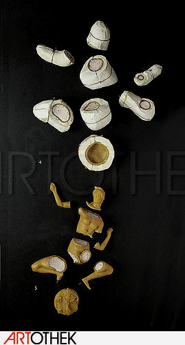 Bildtitel:Demonstrationsmodell des Bronzegusses nach der Technik des Antico: Die Einzelteile des Gußmodells 'Venus nach dem Bade'. (siehe auch Bildnummern 36968, 41495-41497, 41499-41501)