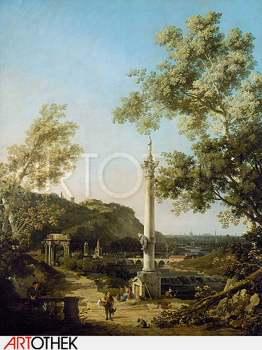 Bildtitel:Englisches Landschafts-Capriccio mit einer Säule. Um 1754