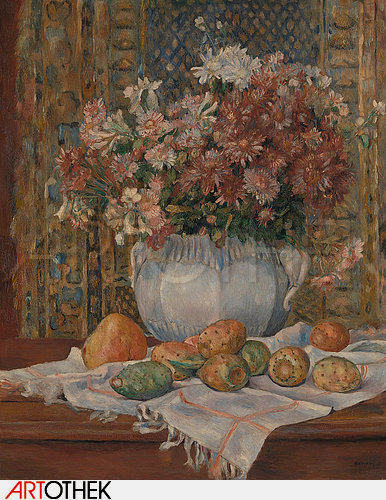 Bildtitel:Stillleben mit Blumen und Feigenkakteen. Um 1885
